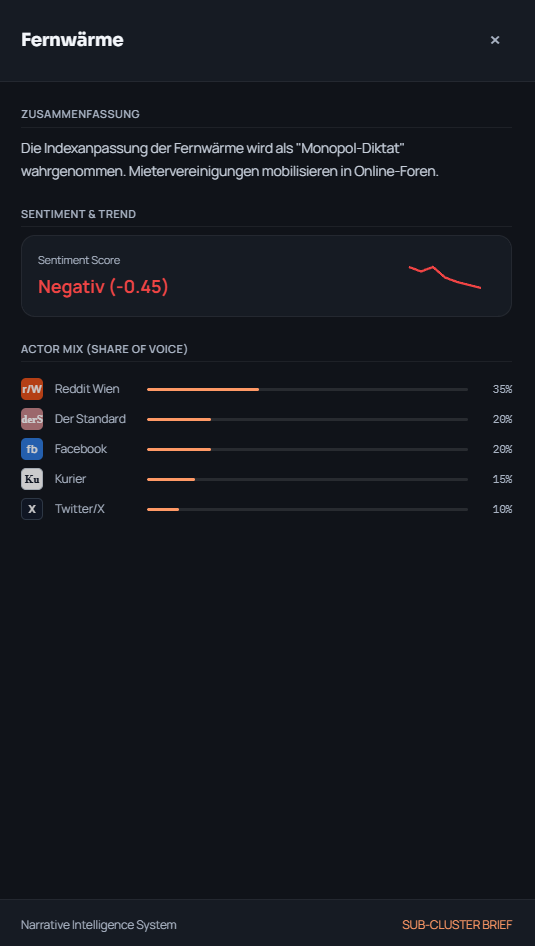 Protect financial and governance stability from escalating public narratives. Narrative Capture identifies institutional risk early - before it triggers regulatory scrutiny, liquidity pressure, or stakeholder reaction.
